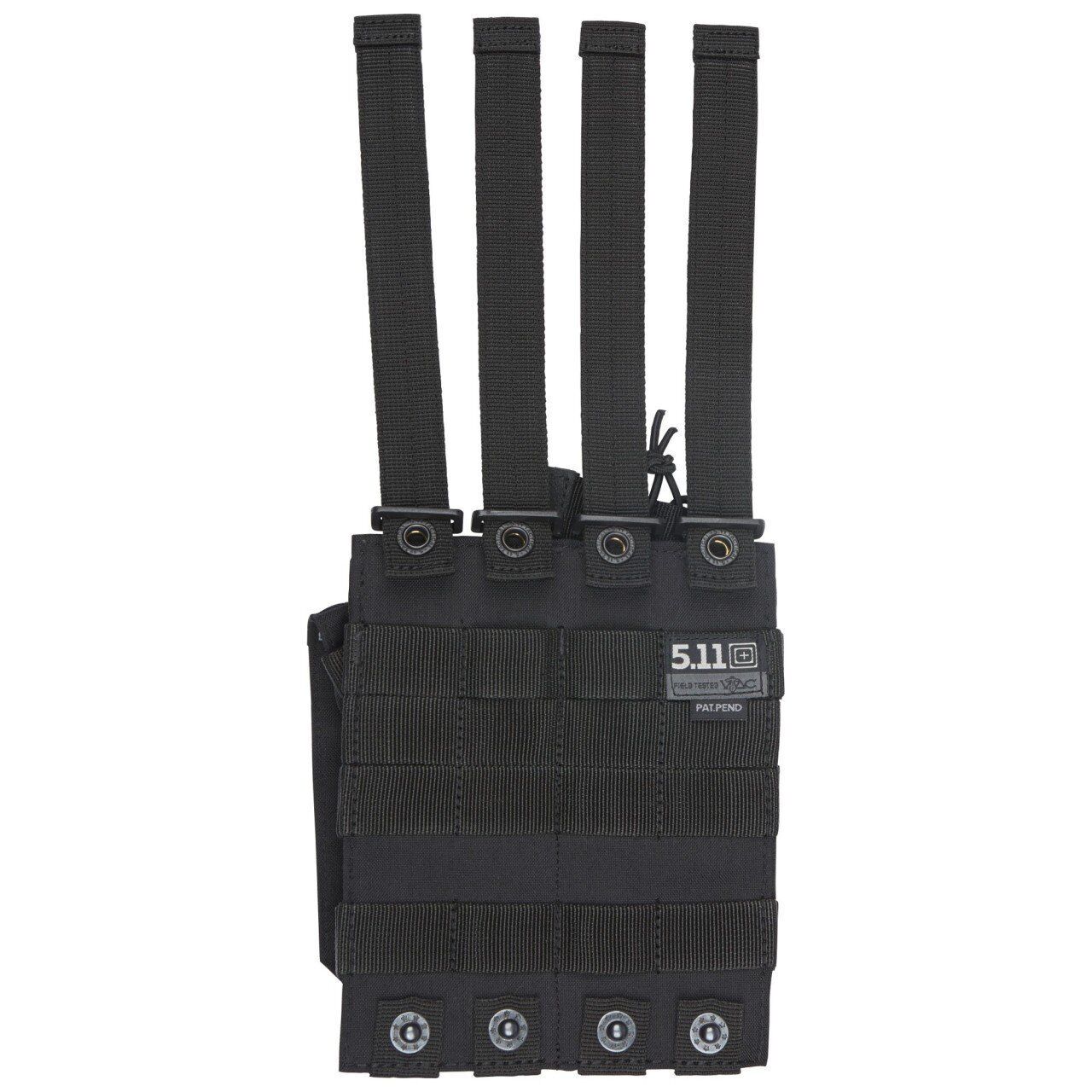 AK Double Bungee Cover Pouch (çiftli tüfek şarjörü kılıfı); iki adet 7.62 şarjör kapasitesine sahip bir kılıf modelidir. Çoğu hava koşulunda; hızlı, sessiz ve güvenilir erişilebilirlik sağlar. Yüksek performanslı bir ürün olmasının yanı sıra, entegre 5.11 SlickStick ve MOLLE sistemiyle uyumludur. Elastik yapılı sıkıştırma sistemi sayesinde sessizlik sağlar. Çekme kulpları kaymaz yapıdadır. Suya karşı korumalı kaplaması sayesinde soğuk ve ıslak hava koşullarına karşı koruma sağlayan bir tüfek şarjörü kılıfıdır.