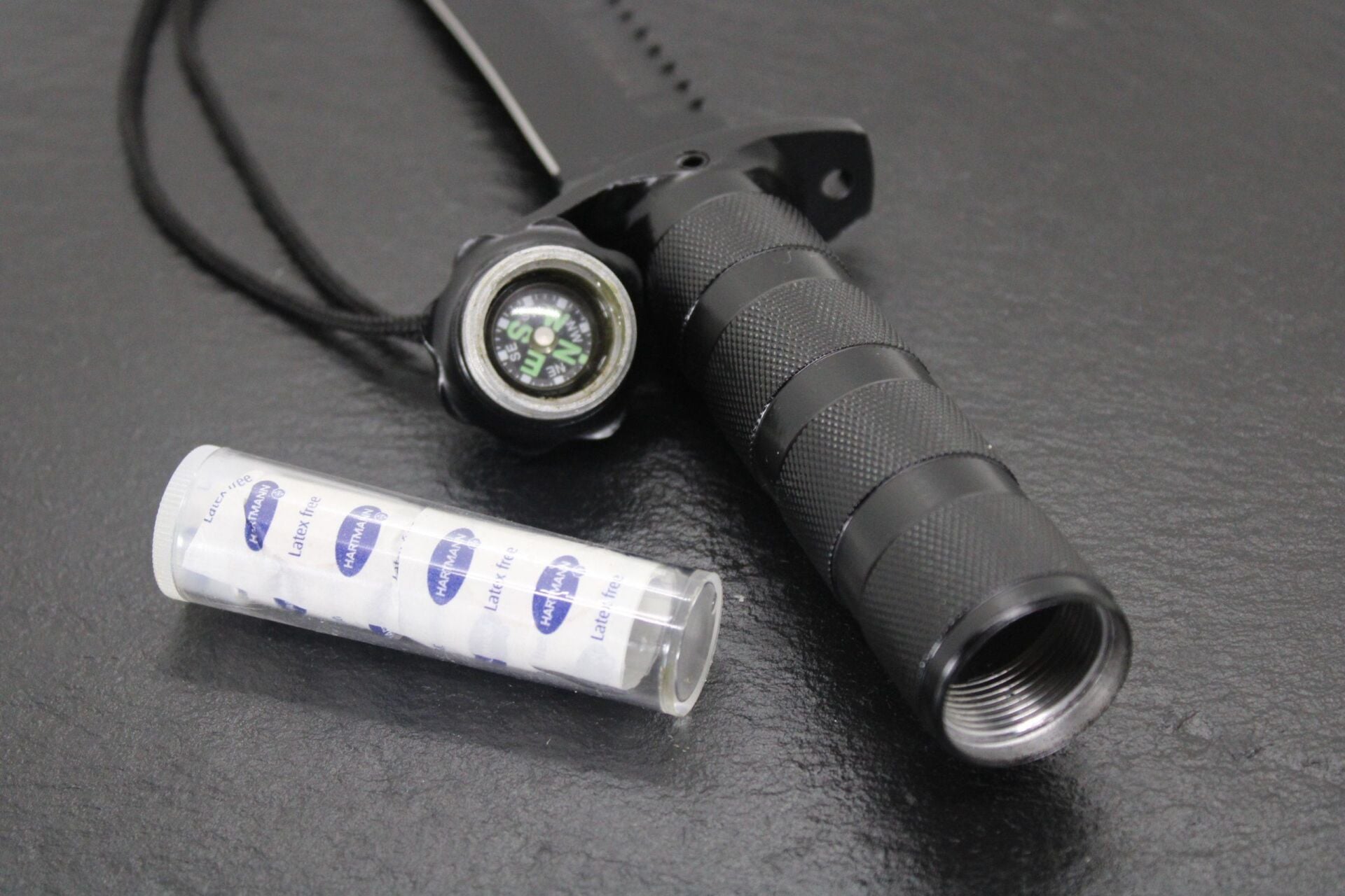 - BIÇAK İÇİNDEKİ AKSESUARLAR: Balık tutma Kiti, Dikiş Seti, Neşter, Pansuman Bandı, Cımbızlar, Kalem, Pusula, Sapan lastiği, Deri yüzme bıçağı.