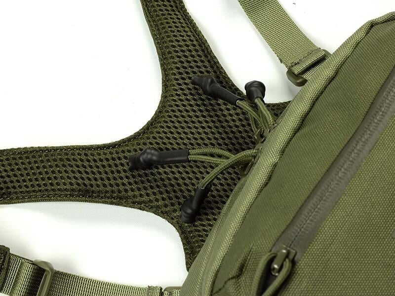Ultra hafif taşıma askıları ve file arka paneli ile sırt çantasının altına bile konforlu şekilde giyilebilir. Alt kısmındaki üçlü MOLLE bant sistemi sayesinde, ekstra çanta ve aksesuarların entegrasyonu da mümkündür. Taktik göğüs çantası, koşu için gizli taşıma çantası, hafif modüler taşıma çözümü gibi anahtar kelimelerle uyumlu olacak şekilde optimize edilmiştir.