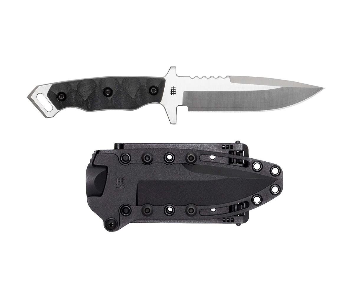 Ergonomik yapıya sahip G10 kabza yüzeyleri, eldivenli veya eldivensiz kullanımlarda yüksek kavrama sağlar. Bıçak sapı boyunca stratejik noktalarda yer alan tırtıklı yüzeyler (jimping), tutuş güvenliğini artırır. Kılıfı, enjeksiyon kalıplı olup MOLLE ve kemer uyumlu şekilde tasarlanmıştır. Kırıcı arka pommel, cam kırma ve diğer darbeli işlemler için idealdir. Arka kısımdaki delikler, paraşüt ipi gibi yardımcı donanımlar için bağlantı olanağı sunar.