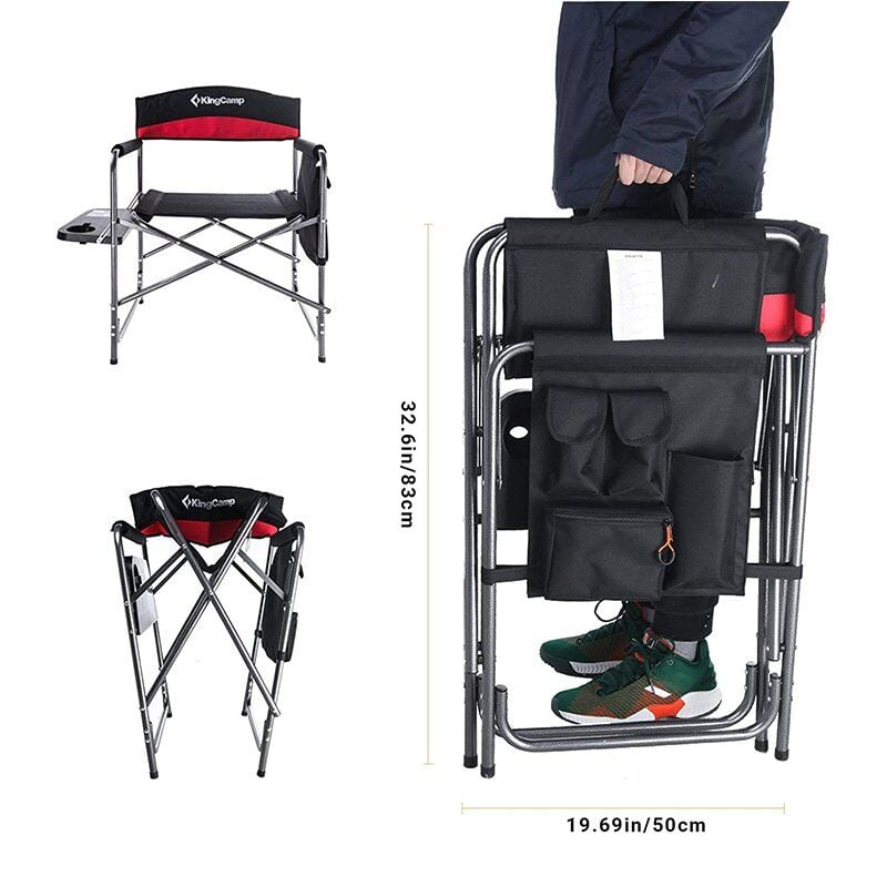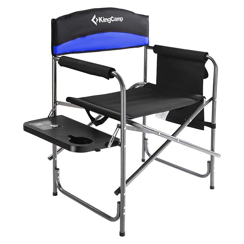 KingCamp yönetmen koltuğunu, katlanır bir kamp sandalyesinden isteyebileceğiniz her şeyi sağlamak için bir yan sehpa ile modifiye ettik ve bu sayede tabağınızı böceklerin ulaşamayacağı bir yere koyabilirsiniz.