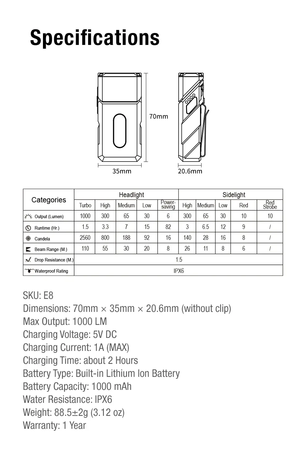 - Çok Yönlü Çift Işık Sistemi: 1000 lümenlik spot ışığı, uzun mesafeli görünürlük için 110 metreye kadar ulaşırken, 300 lümenlik yumuşak bir projektör (beyaz/kırmızı) ile eşleştirilmiştir. Profesyonel çalışmalar, rahat okuma ve tüm açık hava maceralarınız için mükemmeldir.