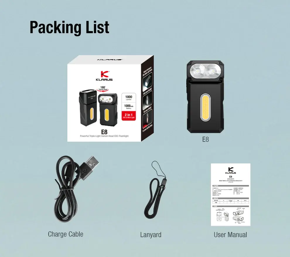 KLARUS E8 Üçlü Işıklandırmalı, Tamamı Metal, Döner Başlıklı EDC El Feneri