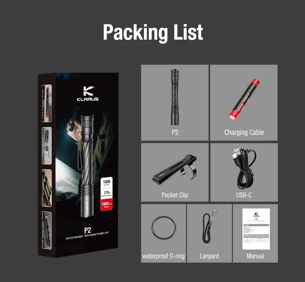 KLARUS P2 Multi-Fuel Performans EDC Kalem Fener