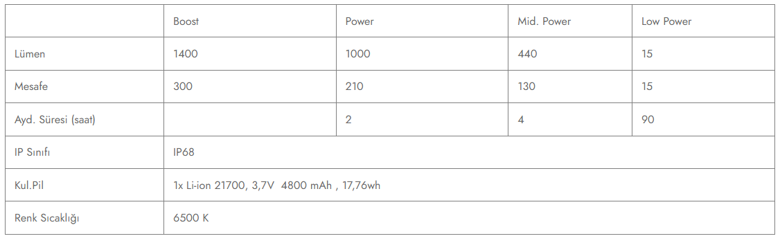 Aynı zamanda özel ışık işlevleri için Akıllı Işık Teknolojisi gibi ileri görüşlü teknolojiler sunar. Lamba, uç kapağı açılarak kolayca değiştirilebilen 21700 Lityum-iyon pille çalışır. Esnek Sızdırmazlık Teknolojimiz sayesinde P7R Core suya ve toza karşı korunur ve hatta kısa bir süre için su altında bile kullanılabilir. Patentli Gelişmiş Odak Sistemimiz bir metreye kadar su derinliği ile çalışır. Bu, P7R Core her durum için ideal bir el feneridir.