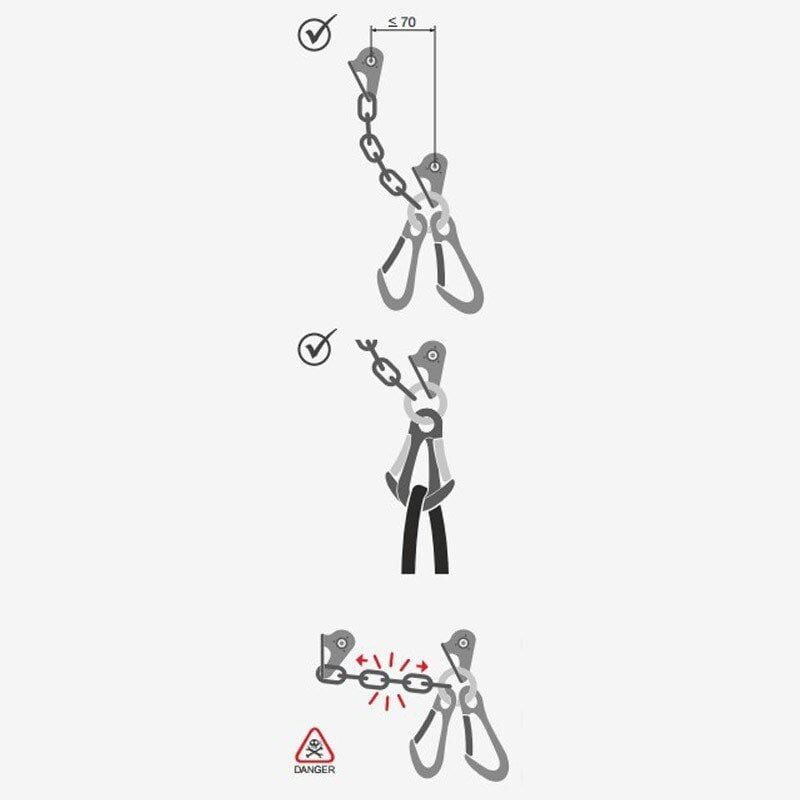 - Karabinalardan birinin kaza ile açılması halinde diğer karabina güvenlik sağlar.