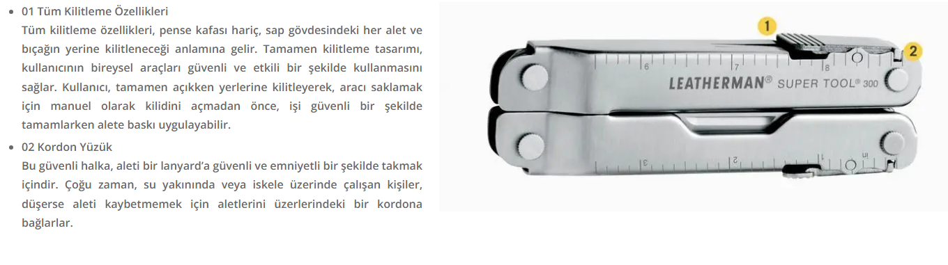Ödüllü Leatherman Super Tool 300, işçinin vazgeçilmez çoklu aletlerinden biridir.Bu zamana kadar ürettiklerimizin arasında geniş penseler en güçlüleri olup sap dizaynları dar alanlarda çalışmanızı oldukça kolaylaştırır. Eldivenleriniz takılı çalışırken bile geniş kesimli yan kısımları aksesuarı rahatça kontrol etmenize yardımcı olur. Damarlı, Sert ve normal kablo kesicileri standart Super Tool 300’ün içine dahil olmak üzere gelmektedir. Ayrıca, çıkarılabilir oldukları için, ilgili bölgeyi tamir edebilir veya bileyebilirsiniz. Super Tool 300 artık tatilden geri döndü!